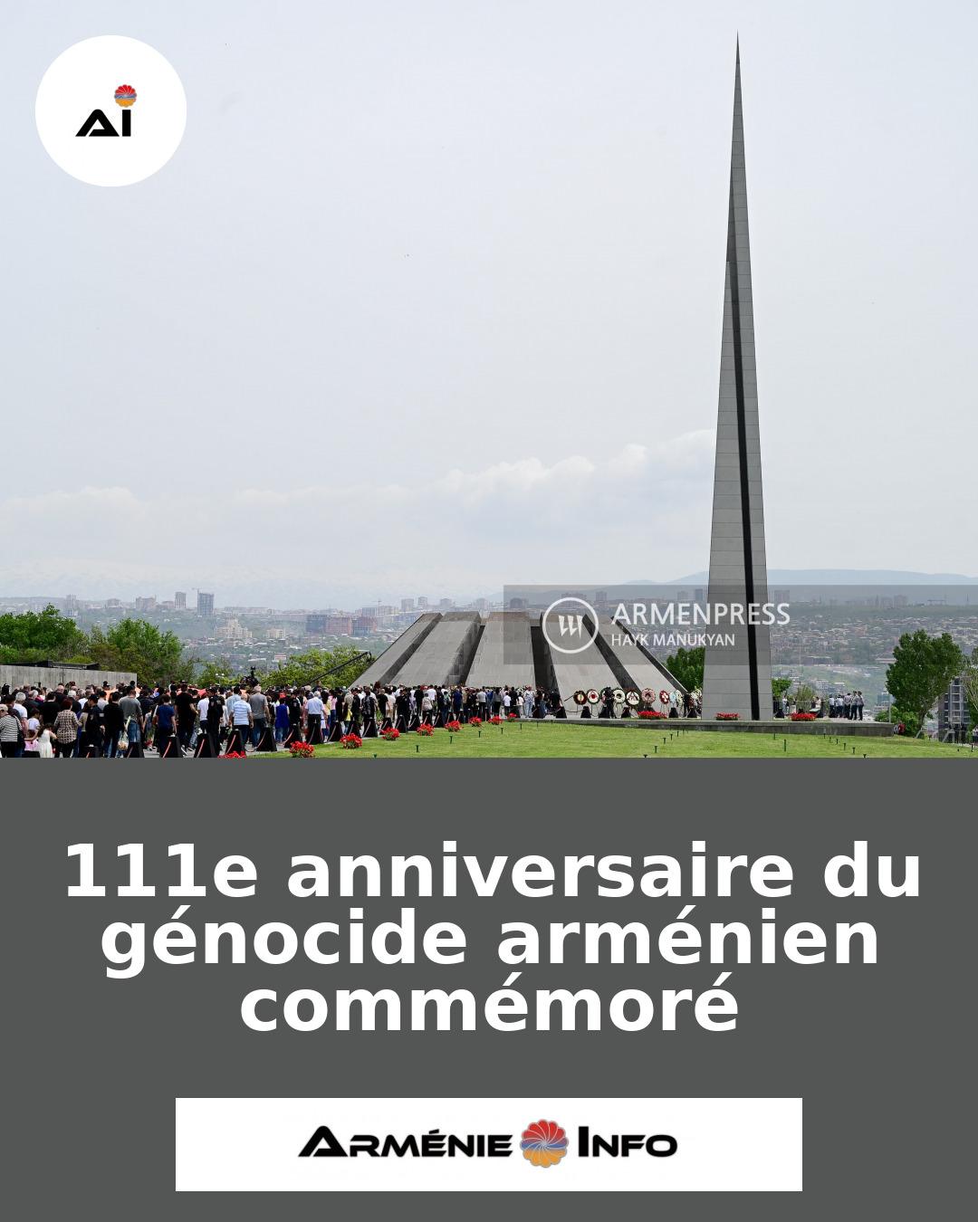 L'Arménie a commémoré le 111e anniversaire du génocide arménien, marquant une journée de souvenir et de recueillement. Des milliers de personnes se sont rassemblées au mémorial de Tsitsernakaberd à Erevan pour rendre hommage aux victimes de ce tragique événement survenu en 1915 sous l'Empire ottoman.