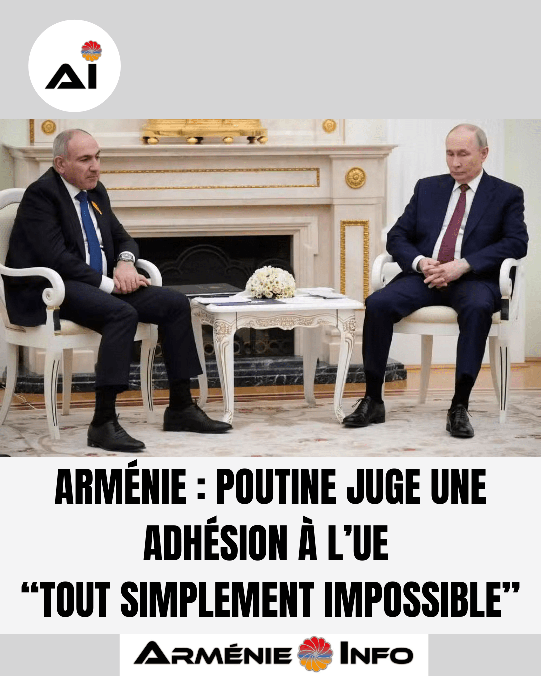 Le président russe Vladimir Poutine a estimé ce mercredi qu’une adhésion de l’Arménie à l’Union européenne était incompatible avec son appartenance à l’Union économique eurasiatique, lors d’une rencontre au Kremlin avec le Premier ministre arménien Nikol Pachinian.
