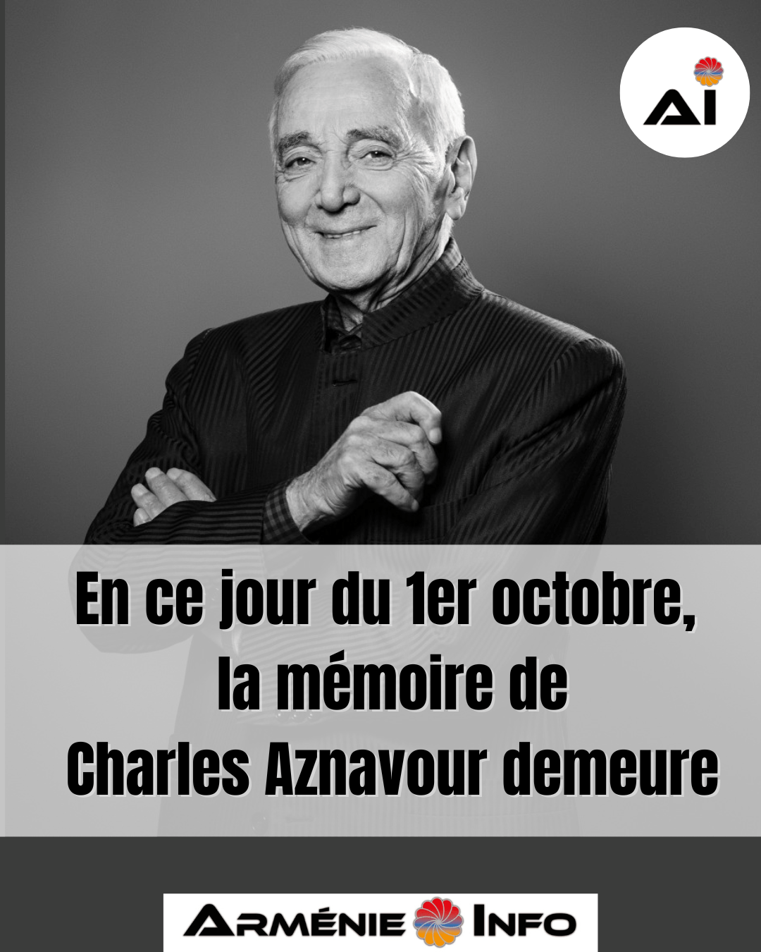 Le 1er octobre marque l’anniversaire de la disparition de Charles Aznavour, immense figure de la chanson française et de la culture arménienne. Artiste universel, il a laissé derrière lui un héritage musical incomparable, mais aussi un engagement constant pour l’Arménie et sa diaspora.