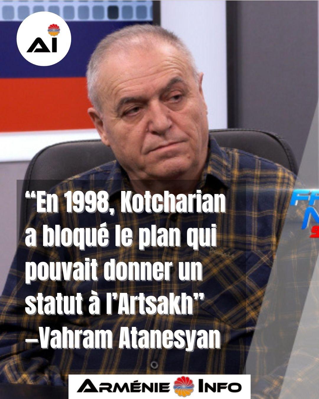 Atanesyan a reposé la question : pourquoi, en 1998, Kotcharian et son équipe ont-ils empêché l’option par étapes ? Et pourquoi, après son rejet, a-t-il envoyé son ministre des Affaires étrangères à Moscou pour demander à Primakov que Bakou accepte d’accorder un statut quelconque au Karabakh dans ses frontières, ce que l’Azerbaïdjan a refusé ? Depuis, aucune discussion sur le statut n’a eu lieu.