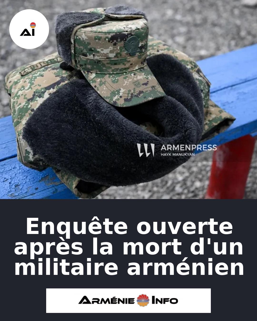 Les autorités arméniennes ont ouvert une enquête criminelle suite au décès d'un militaire, a rapporté Armenpress. Le soldat, dont l'identité n'a pas été divulguée, est décédé dans des circonstances qui restent à éclaircir.