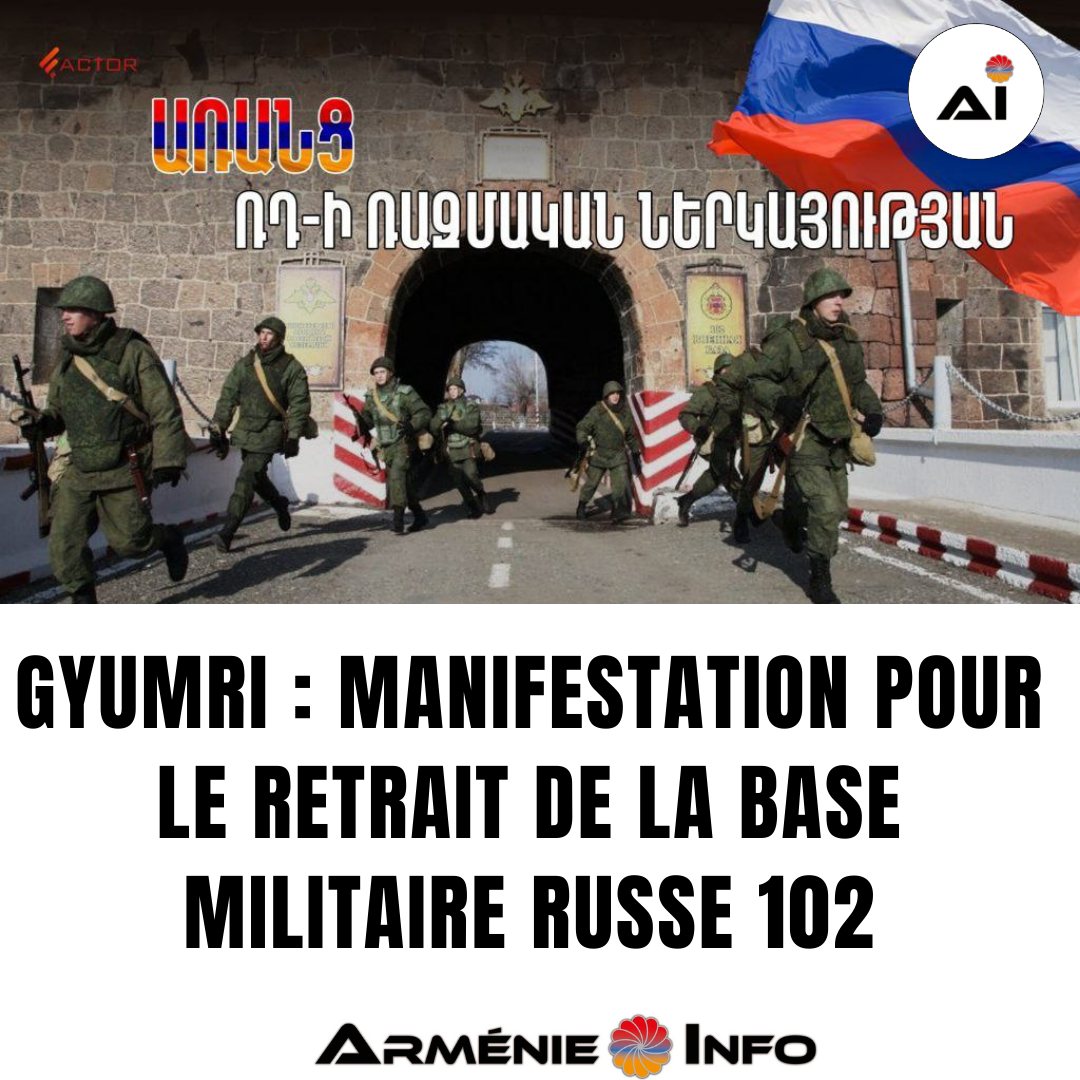 Aujourd’hui à Gyumri, le parti « Pour la République » a organisé une manifestation exigeant le retrait de la base militaire russe 102 stationnée en Arménie.