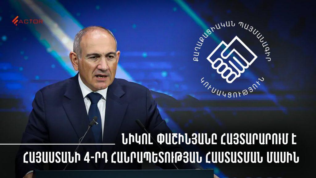 Le Premier ministre de la 3ème République d’Arménie, Nikol Pashinyan, a annoncé lors du congrès de son parti, le Parti de l’Accord Civil, l’établissement de la 4ème République d’Arménie.