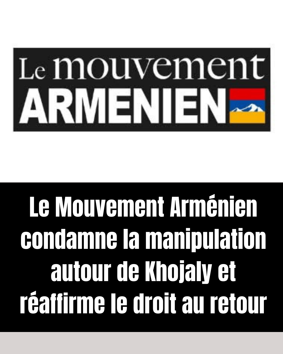 Le Mouvement Arménien dénonce avec force la propagande du régime azerbaïdjanais qui, par l’épisode de Khojaly, tente d’inverser les rôles dans une démarche de négationnisme visant à masquer le nettoyage ethnique de l’Artsakh entre 2020 et 2023. Un événement survenu dans le contexte d’une guerre ne peut en aucun cas être assimilé à un génocide. Cette instrumentalisation politique n’a qu’un objectif : détourner l’attention des crimes commis contre le peuple arménien.