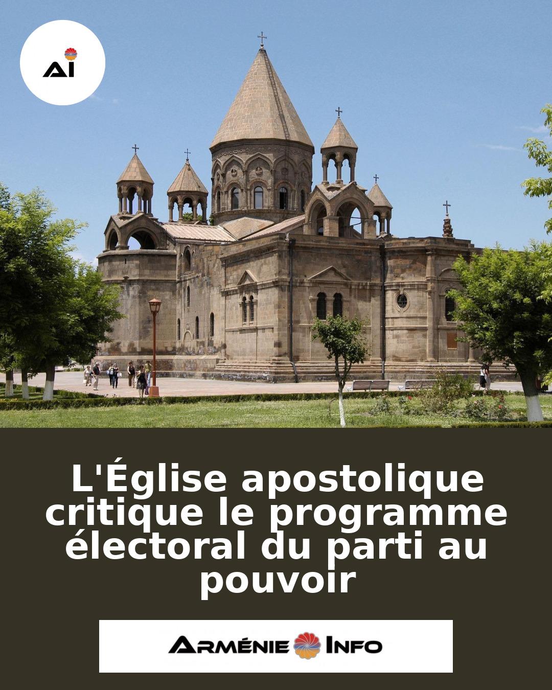 La Mère Église de l'Église apostolique arménienne a fermement condamné les "dispositions inacceptables" du programme politique 2026-2031 du parti au pouvoir, Contrat civil, si celui-ci remporte les élections législatives de juin.