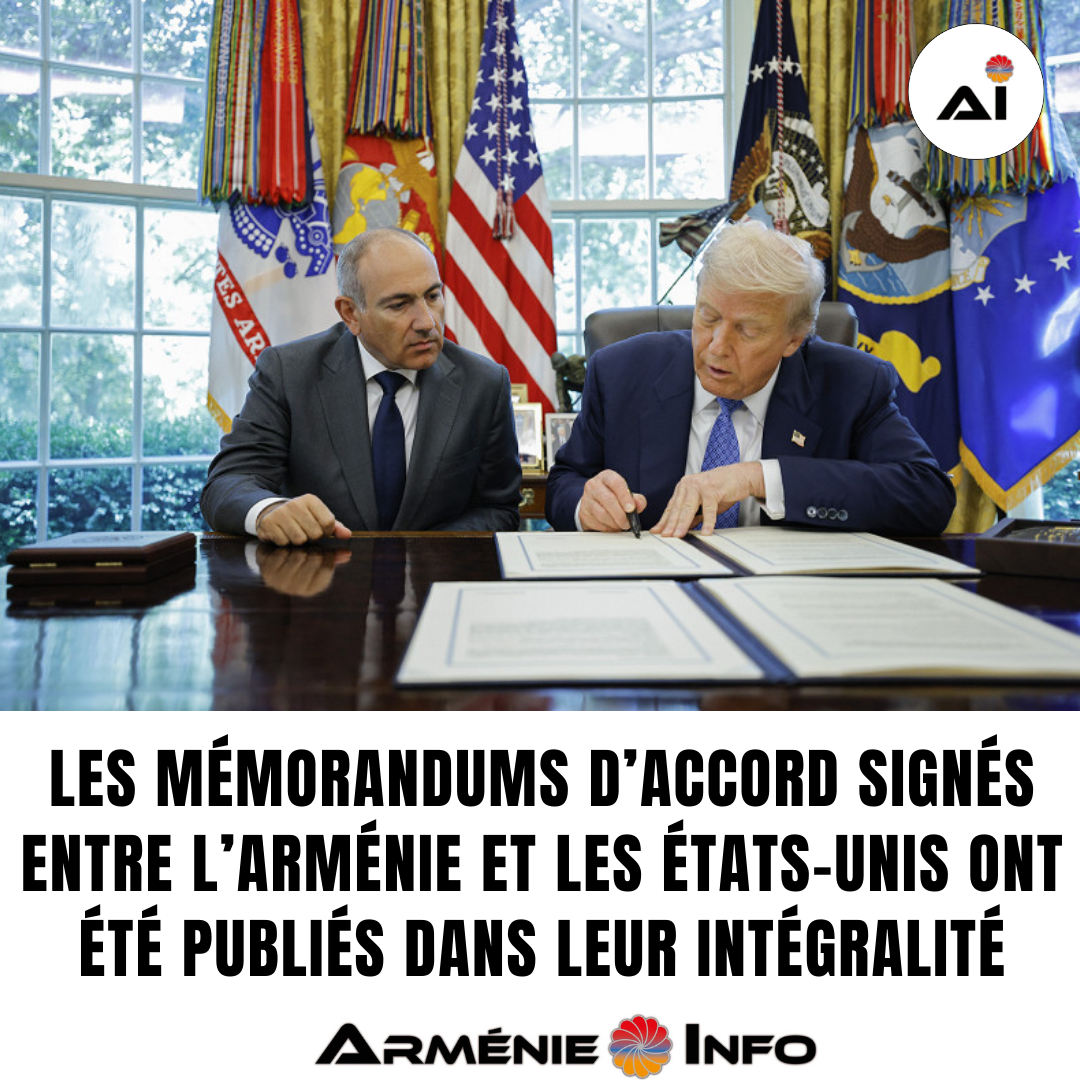 Le 29 août 2025, le gouvernement de la République d’Arménie et le gouvernement des États‑Unis ont rendu publics les mémorandums d’accord signés le 8 août à Washington entre les deux pays. Le texte intégral de ces documents est présenté ci-dessous.