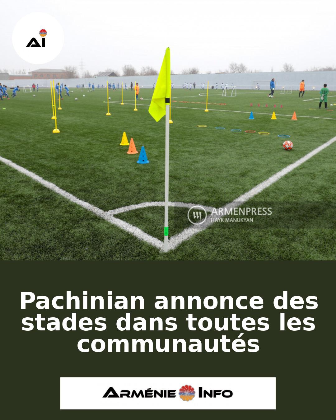 Le Premier ministre arménien Nikol Pachinian a annoncé que des stades seront construits dans toutes les communautés d'Arménie. Cette initiative vise à promouvoir le sport et à améliorer les infrastructures locales à travers le pays. Pachinian a souligné l'importance de ces installations pour encourager la participation des jeunes au sport et pour renforcer le tissu social des communautés.