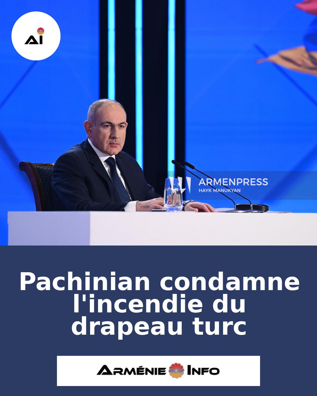 Le Premier ministre arménien, Nikol Pachinian, a fermement condamné l’incendie du drapeau turc lors d’une récente manifestation à Erevan. Selon Armenpress, Pachinian a qualifié cet acte d’irresponsable et inacceptable, soulignant qu’il ne reflète pas les valeurs de l’Arménie.
