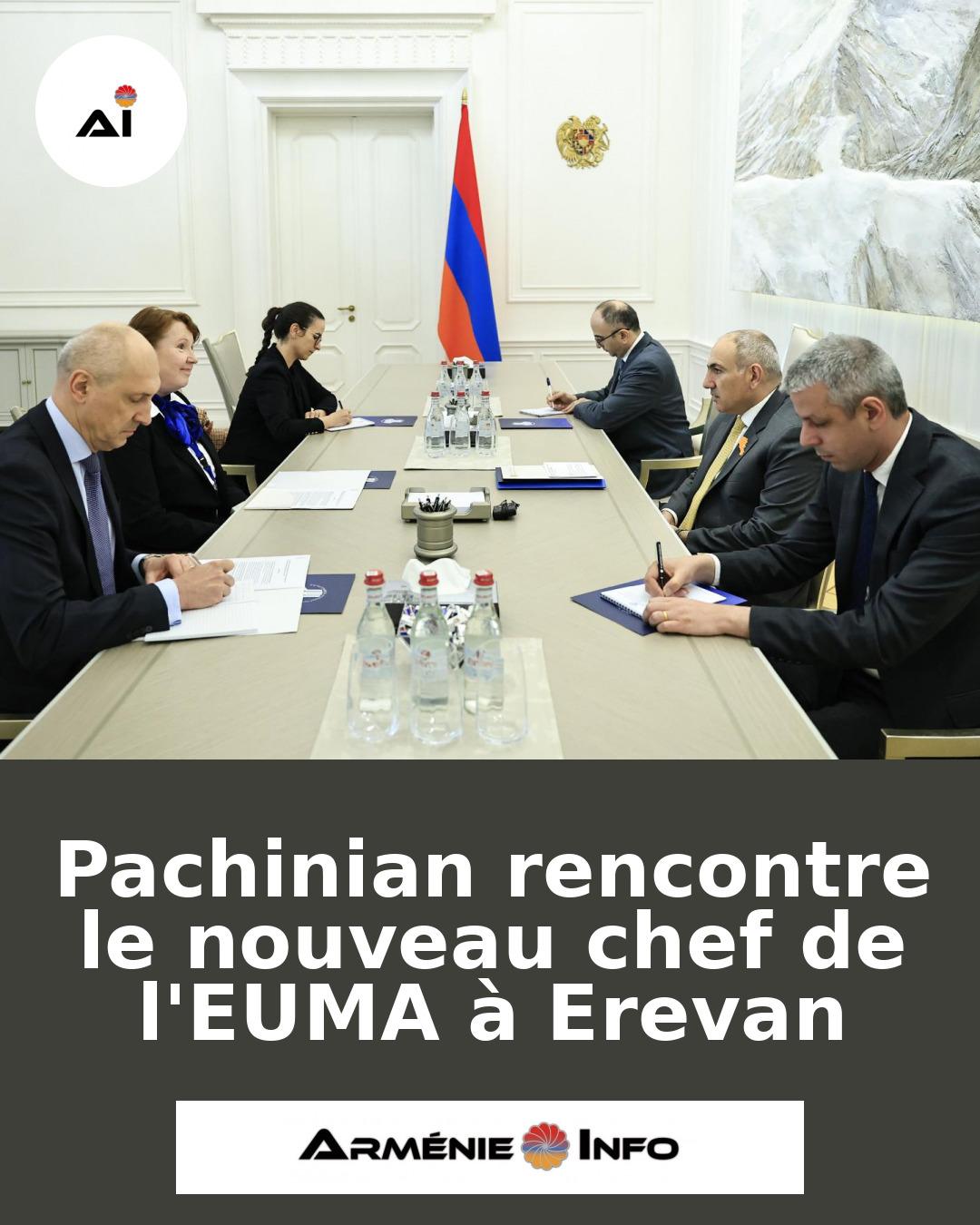 Le Premier ministre arménien Nikol Pachinian a rencontré le nouveau chef de la Mission de surveillance de l'Union européenne en Arménie (EUMA) à Erevan. Cette mission est chargée d'observer et de rendre compte de la situation le long de la frontière entre l'Arménie et l'Azerbaïdjan. Elle vise également à contribuer à la sécurité humaine dans ces zones.