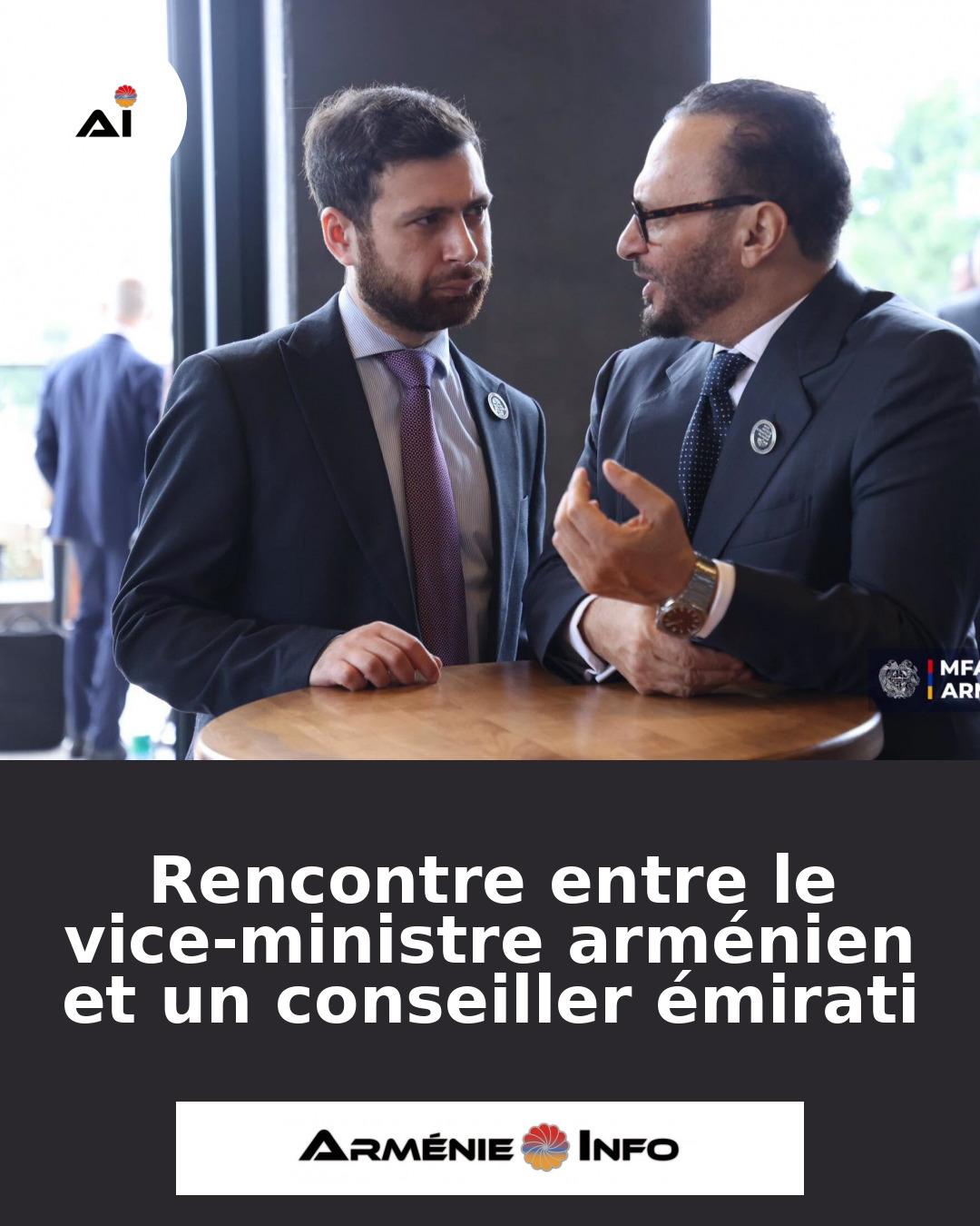 Le vice-ministre des Affaires étrangères de l'Arménie, Paruyr Hovhannisyan, a rencontré le conseiller diplomatique du président des Émirats arabes unis, Anwar Gargash, pour discuter de l'agenda bilatéral entre les deux pays. La réunion a eu lieu dans le cadre d'une visite officielle aux Émirats arabes unis.