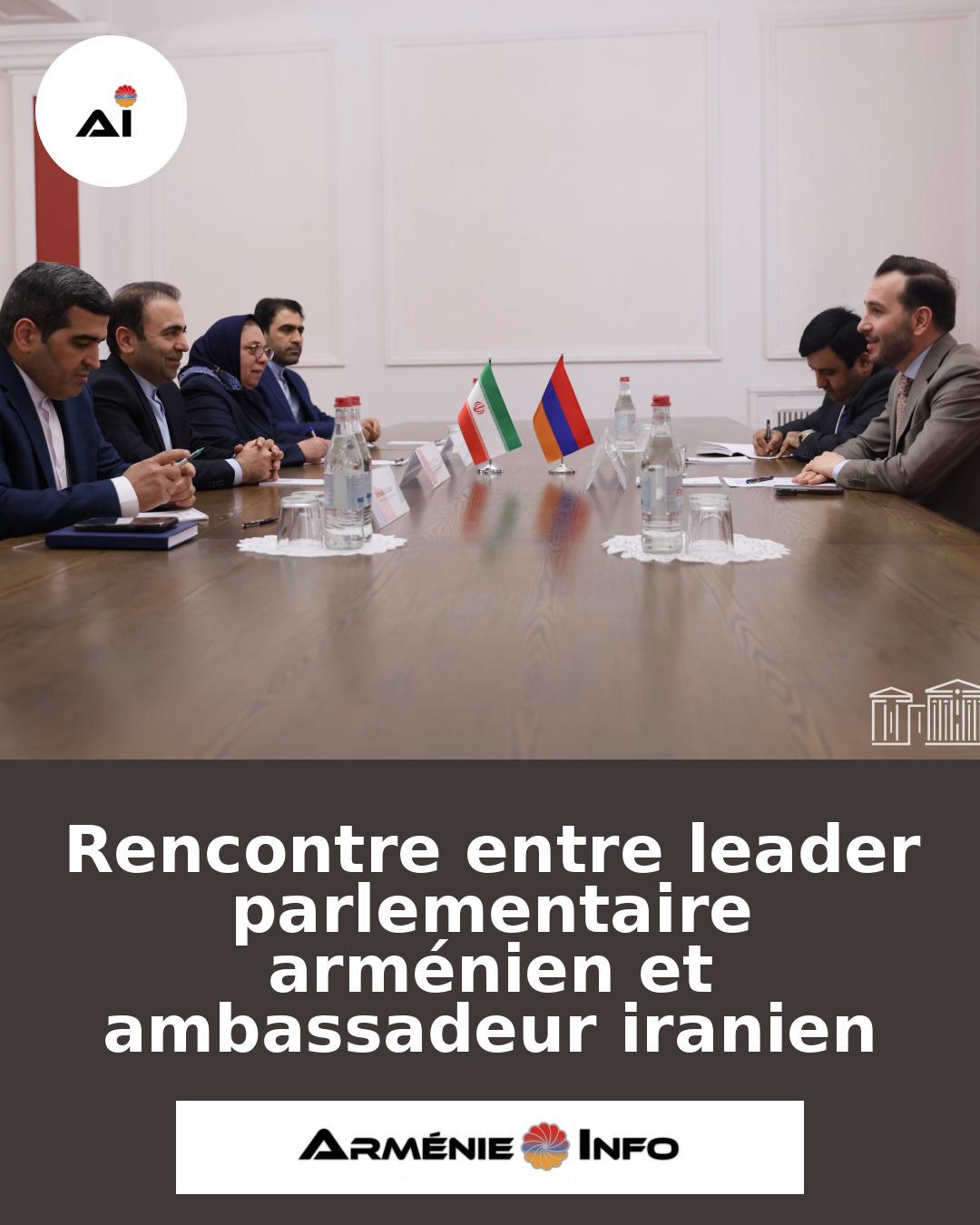 Le chef de la majorité parlementaire arménienne a rencontré l'ambassadeur d'Iran en Arménie, selon Armenpress. Cette rencontre s'inscrit dans le cadre des relations bilatérales entre les deux pays, qui cherchent à renforcer leur coopération dans divers domaines.