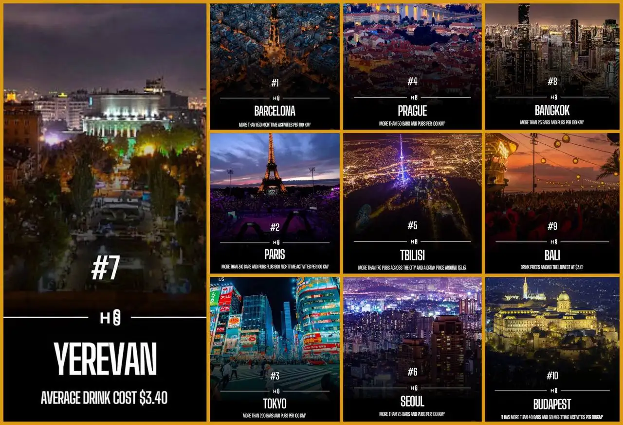 Yerevan, la capitale de l’Arménie, a été classée parmi les dix meilleures villes nocturnes au monde, selon un récent rapport. Cette reconnaissance met en avant la richesse de la vie nocturne de la ville, qui attire à la fois les habitants et les touristes.